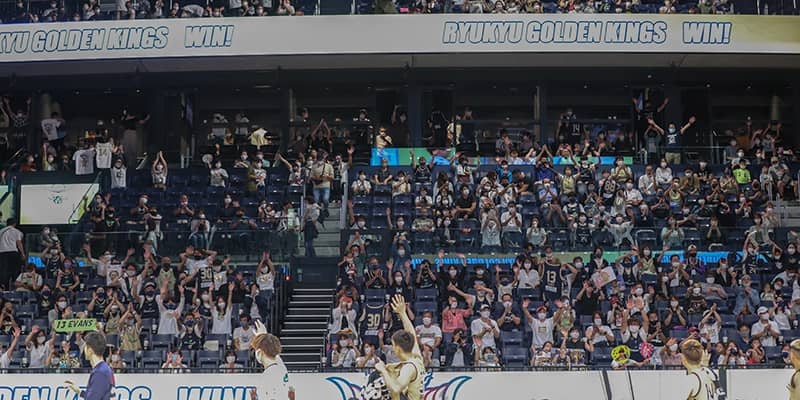 試合後、選手たちを称える琉球ブースター [写真]=B.LEAGUE