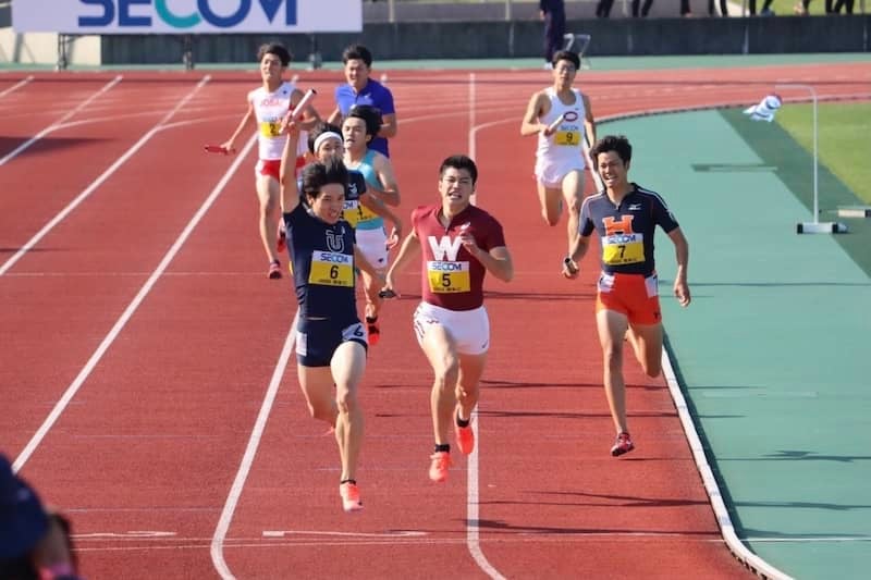 3走の新上も序盤こそ先行を許したが、後半に伸びる走りを見せ、再び東洋大と並びトップに立つ。アンカー山内はこの種目で日本代表の経験がある鈴木碧斗(東洋大)、今大会で400メートル4位の澤田夏輝(法大)を従え、先頭をひた走った。後続のチームに猛追される場面もあったが「余裕があった」(山内)と第3コーナーでギアを変え、最後の直線ではついに鈴木との一騎打ちに。しかし、それまで後方に位置づけていた鈴木のラストスパートがさく裂した。今大会200メートル優勝を達成したその切れ味には敵わず、山内は2位でゴール。レース後は、しばらくその場から立ち上がることができなかった。