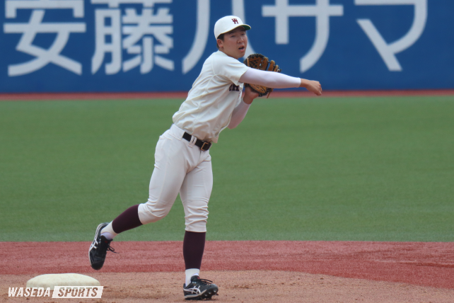 そんな橘内が一番の武器として自負するのは、安定感のある守備だ。ここまで「小さなミスがたくさんあった」と謙虚に振り返るが、エラーは無く、その盤石ぶりを存分に発揮している。ハイレベルな打者が並ぶ中で、「今までと同じ感覚ではうまく守れない」。しかし、そのような環境での守備にやりがいを感じている。守備には高校時代から多くの時間を割いてきた。金子銀佑(令3教卒=現明治安田生命)から学んだ、相手を思いやるキャッチボール。先輩投手との特訓で習得したジャンピングスロー。当時から積み重ねてきたものが現在の堅守に結びついている。