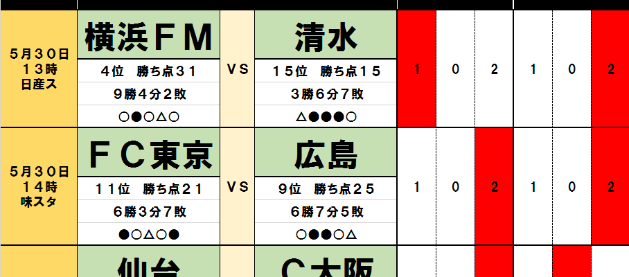 今回のtotoではJ1第17節の9試合と、J2第16節の4試合が対象となっている。過去のデータや直近の様子などから、分…