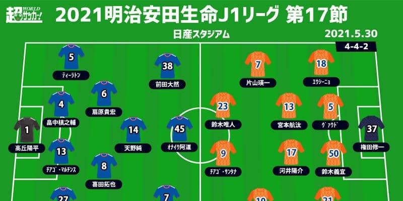 【明治安田生命J1リーグ第17節】 2021年5月30日(日) 13:00キックオフ 横浜F・マリノス(4位/31pt)…
