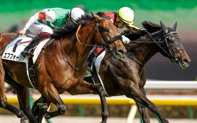 外のエフフォーリアと内のシャフリヤールが激しく叩き合い、鼻面を揃えてゴールを駆け抜けた。