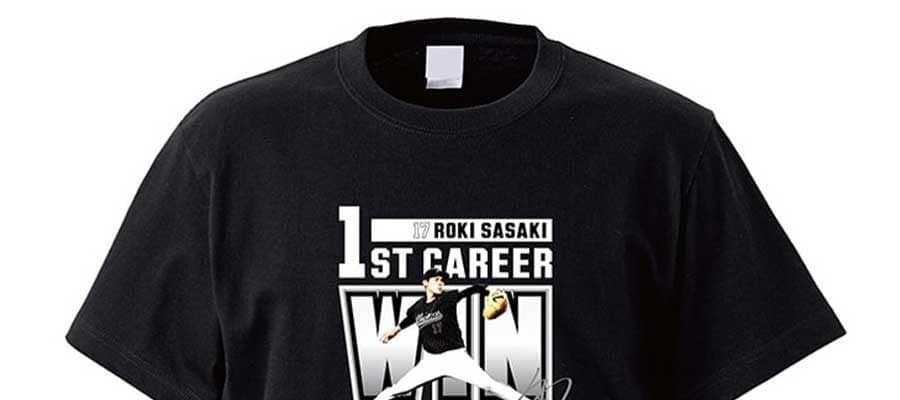 佐々木朗のプロ初勝利記念グッズはTシャツ(3500円)、フェイスタオル(1800円)、バスタオル(4900円)、キーホルダー(600円)、記念刺繍加工入りレプリカキャップ(4000円)、記念刺繍加工入りレプリカユニホーム(1万8000円)、証明書付き直筆サイン入りユニホーム(99個限定、9万9000円)、証明書付き直筆サイン入りボール(99個限定、5万円)、証明書付き直筆サイン入りフォトパネル(99個限定、4万円)。