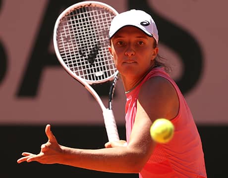 昨年秋に行われた前回大会を制し四大大会初優勝を飾った20歳のシフィオンテクはこの日、序盤から強烈なストロークを武器に試合を支配。第1セットではわずか9ポイントしか落とさない完璧プレーを披露し6ゲームを連取した。