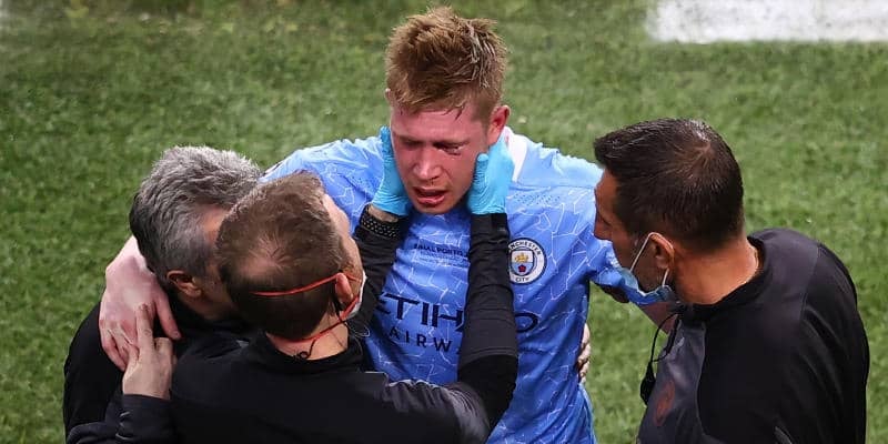 デ・ブライネは、29日に行われたチャンピオンズリーグ(CL)決勝のチェルシー戦で負傷。試合後に自身のツイッターで鼻骨と左眼窩底の骨折を報告していた。