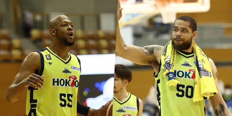 信州との契約継続が発表されたマクヘンリー(写真左)とマーシャル(写真右)[写真]=B.LEAGUE