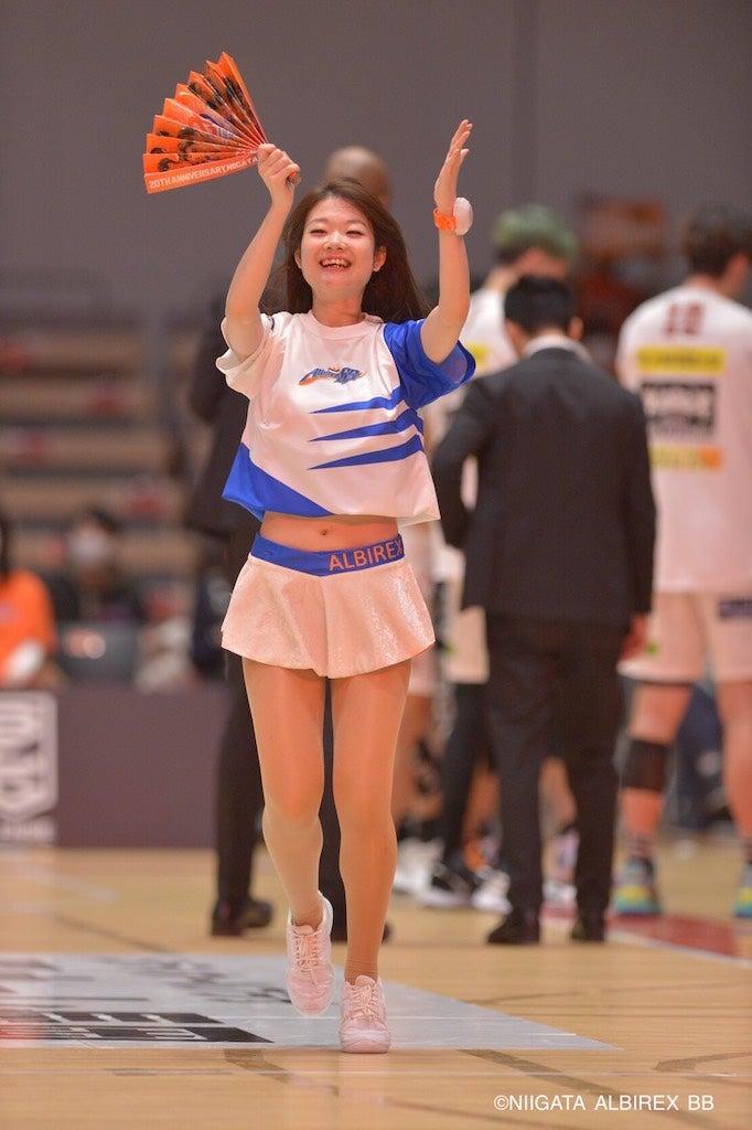 新体操をしていた高校生のときに新潟アルビレックスBBの試合のハーフタイムで新体操パフォーマンスをする機会があり、会場が熱気に包まれている中で踊れたことに感動し、アルビレックスチアリーダーズとして活動したいと思ったからです。