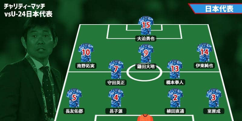 日本代表は、当初の予定通りのスケジュールで試合に臨めるが、対戦相手がジャマイカからU-24日本代表に急遽変更されることに。思ってもない相手と対戦することとなった。