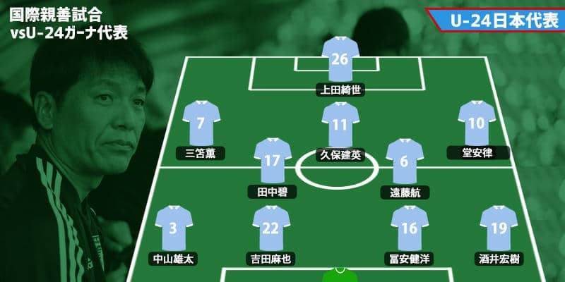 そんな中で、U-24ガーナ代表と対戦するU-24日本代表。オーバーエイジの吉田、DF酒井宏樹(マルセイユ)、MF遠藤航(シュツットガルト)が活動に参加。遠藤はA代表戦の終盤に出場したが、この試合では五輪を想定したメンバーを試したいところだろう。