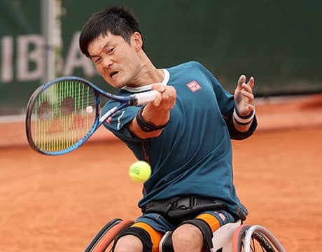 テニスの全仏オープン(フランス/パリ、レッドクレー、グランドスラム)は5日、車いすテニスの男子シングルス準決勝が行われ、第1シードの国枝慎吾がS・ホーデット(フランス)を5-7, 6-0, 6-4の逆転で下し、決勝進出を果たした。