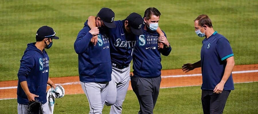 マリナーズの菊池雄星投手が5日(日本時間6日)、先発した敵地でのエンゼルス戦でアクシデントに見舞われた。4回まで8奪三振の力投を見せていたが、5回に打球が右脚を直撃。グラウンドに倒れ込んで自ら歩けず、そのまま降板となった。球団によると、右膝打撲の診断。患部の状況について、スコット・サービス監督は試合後「骨折とかではないと思っている。明日また状態を見ることになる。そこからまた判断していく」と見通した。