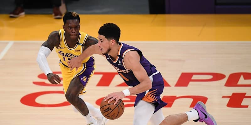 レギュラーシーズンでは平均25.6得点4.2リバウンド4.3アシストを残したブッカーは、ロサンゼルス・レイカーズとのプレーオフファーストラウンドのシリーズでも29.7得点6.2リバウンド5.0アシストを記録。特に勝利した第6戦では、第1クォーターの22得点を含む、プレーオフキャリアハイの47得点と怒涛の得点劇を披露した。