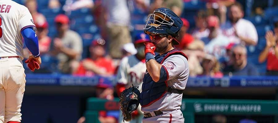ナショナルズの捕手アビラが、飛び出した二塁走者を追い詰めてアウトに■ナショナルズ 2ー1 フィリーズ(日本時間5日・フィ…