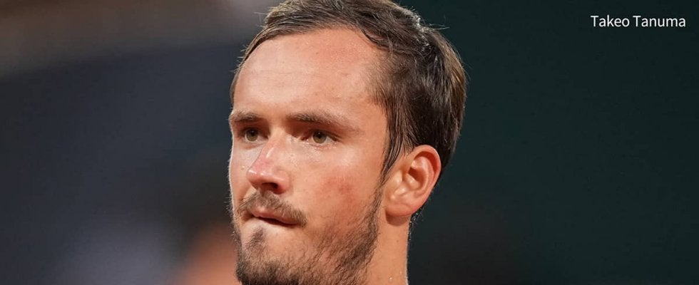 6月8日、男子シングルス準々決勝で第5シードのステファノス・チチパス(ギリシャ/世界ランク5位)に敗れた第2シードのダニール・メドベデフ(ロシア/世界ランク2位)。