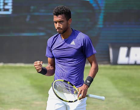 男子テニスツアーのメルセデス・カップ(ドイツ/シュトゥットガルト、芝、ATP250)は8日、シングルス2回戦が行われ、第3シードのF・オジェ アリアシム(カナダ)が世界ランク54位のL・ハリス(南アフリカ)を6-3, 7-6 (7-4)のストレートで破ってベスト8進出を果たすとともに、今季芝初戦を白星で飾った。