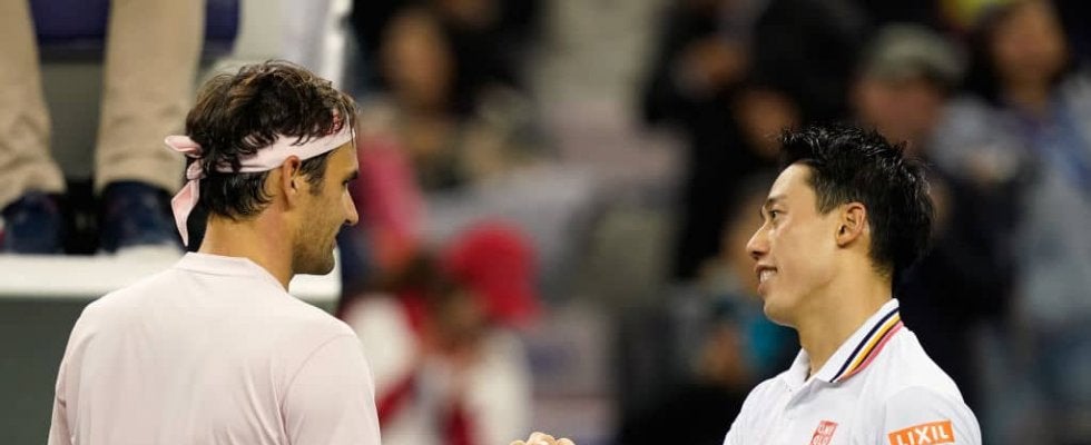 ※写真は「ATP1000 上海」準々決勝でのフェデラー(左)と錦織(右)