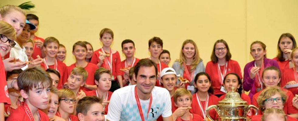 ※写真は2017年「ATP500 バーゼル」優勝後にボールキッズ達とピザパーティーで勝利を祝うフェデラー