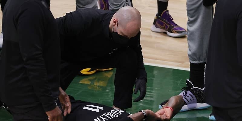 第2クォーター残り約6分。リング下の合わせからショットを決めたカイリーは、着地時にヤニス・アデトクンボの足に乗っかってしまい、右足首を捻ってしまった。ネッツは後半に入ってこの試合には戻らないことを発表し、カイリーはウォーキングブーツで足首を保護して会場をあとにした。