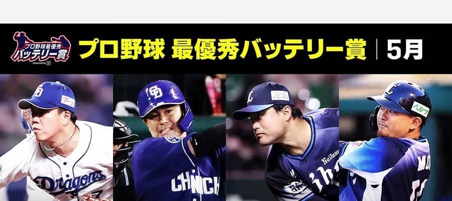 「2021プロ野球月間最優秀バッテリー賞 powered by DAZN」の5月度の受賞者が6月14日に発表され、セ・リーグは中日の柳裕也投手-木下拓哉捕手を3・4月度に続いて選出。パ・リーグは西武の松本航投手-森友哉捕手のコンビが選ばれた。