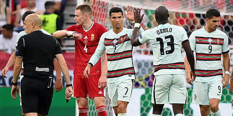 以降も押し込むポルトガルだが、大声援を後押しに集中した対応を続けるハンガリーの守備をあと一歩で崩し切れない。19分にはペペのロングフィードに反応したC・ロナウドに見せ場も、GKとの一対一を決め切れなかった上、抜け出しの時点でオフサイドの判定が下された。