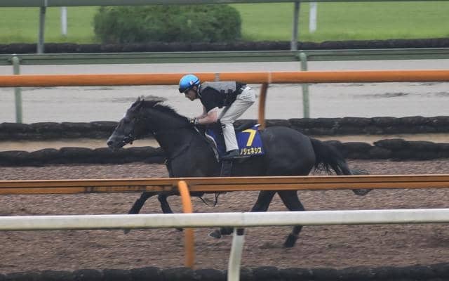 レースで騎乗予定のC.ルメール騎手が跨って、CWでの併せ馬。ジェラルディーナを追走して、6F標識を通過した時点ではその差が4馬身ほど。それが3コーナーではグンと前へ並びかけていく前向きさを見せたこともあり、内から前へ出ていってしまう。