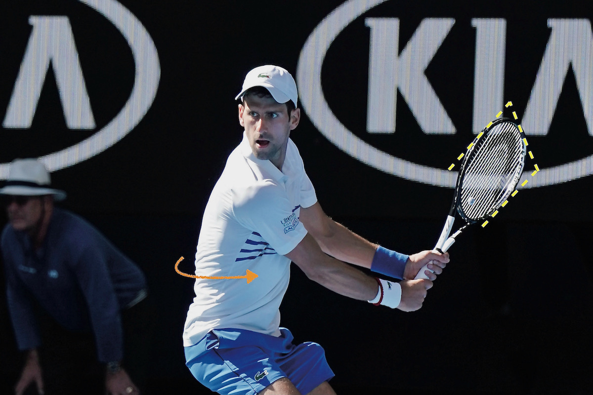 現代テニスの特徴と言えば、スピード化。ラケットが進化したことで、一般プレーヤーにも影響があるだろう。プロの選手が行っているのは、コンパクトなテイクバック。ボディーターンだけで、あごの下に右肩がくるようにしている。そして、「打点の高さにヘッドをセット」すること。これで、インパクトミスは減らせるはずだ。