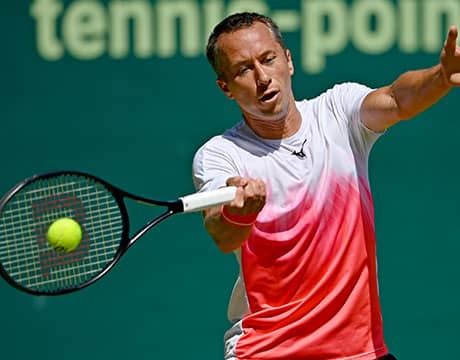 男子テニスのノベンティ・オープン(ドイツ/ハレ、芝、ATP500)は15日、シングルス1回戦が行われ、ワイルドカード(主催者推薦)で出場している世界ランク128位のP・コールシュライバー(ドイツ)が同94位のC・ムーテ(フランス)を6-4, 7-6 (7-4)のストレートで破り、ベスト8進出を決めた。
