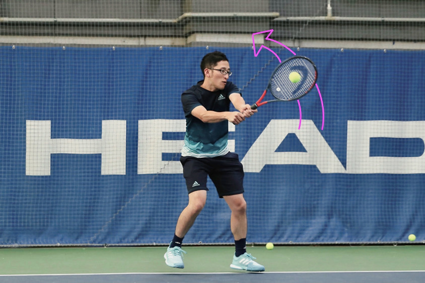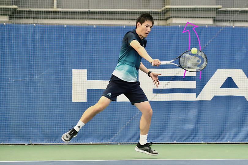 ヘッドを立てていくように使って、スピンをかけるとインパクト時間も伸び、ミスショットの確率が減る