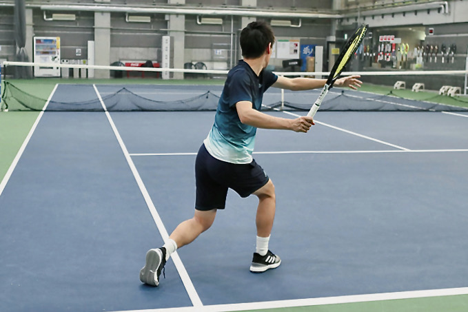 アドサイドで逆クロスを狙う「フォアハンド・リターン」では