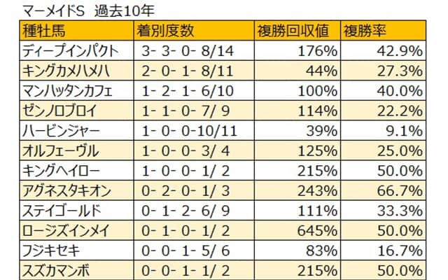 20日に阪神競馬場で行われるマーメイドS(3歳上・牝・GIII・芝2000m)について血統・種牡馬別に検証していく。…