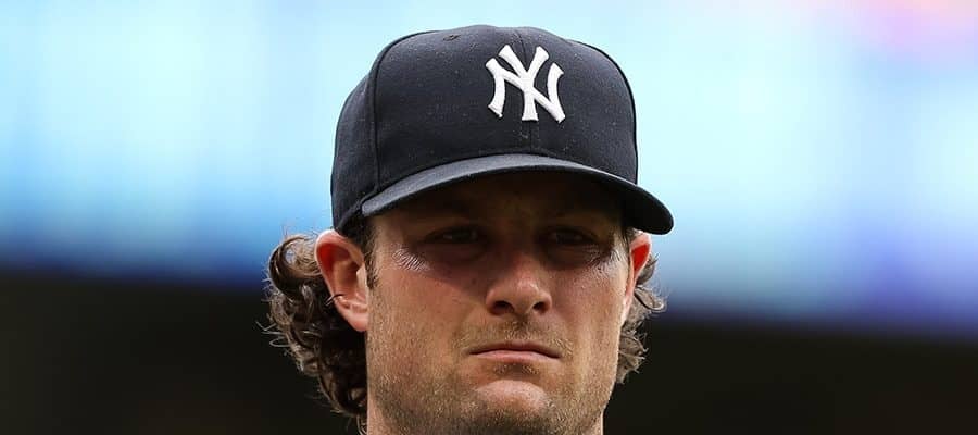 16日(日本時間17日)に行われたブルージェイズ戦で今季8勝目をマークしたヤンキースのゲリット・コール投手。8回を投げて4安打2失点の好投で、ブルージェイズ打線を抑え込んだ。