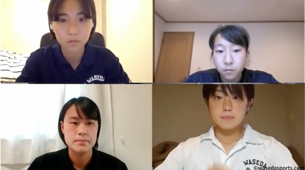 前回大会、13年ぶりのアベック優勝を果たした早大ラクロス部。「自分たちの代で勝ちたい」と意気込む主軸の4人、AT倉田瑠々主将(文構4=東京・早実)、AT今井可菜子副将(社4=県立千葉)、MF山邊 七菜子(基理4=神奈川・日本女子大附)、DF鈴木明日葉(スポ4=埼玉・浦和一女)に2年ぶりの早慶戦にかける思いを伺った。
