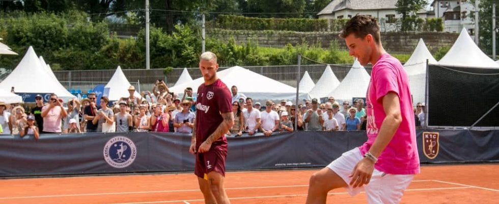 世界ランキング5位のドミニク・ティーム(オーストリア)が、FCバルセロナ所属で元スペイン代表のサッカー選手ジェラール・ピ…