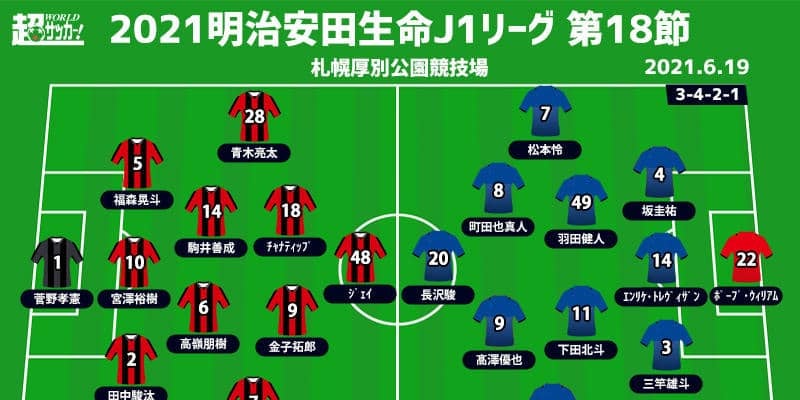【明治安田生命J1リーグ第18節】 2021年6月19日(土) 14:00キックオフ 北海道コンサドーレ札幌(11位/2…
