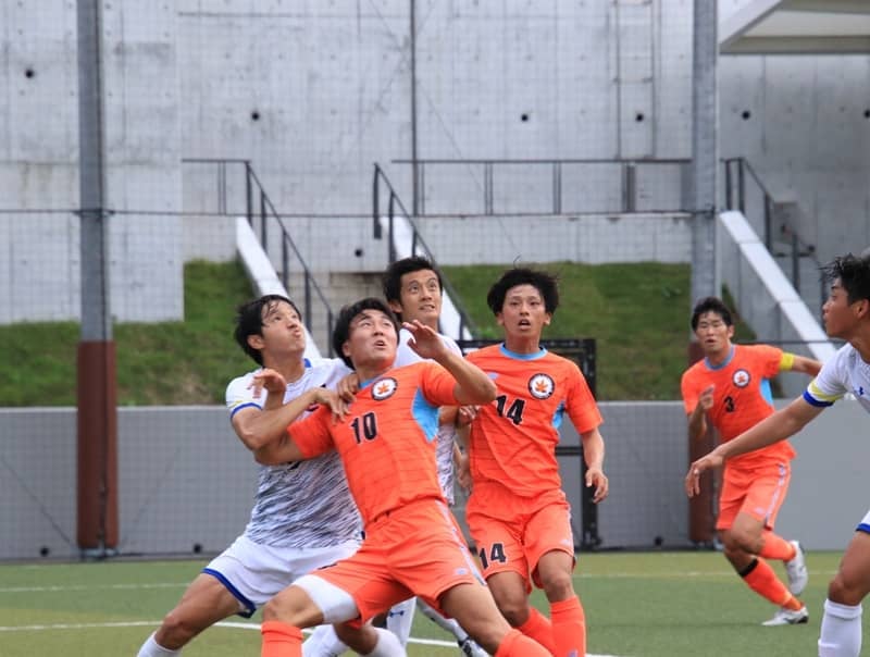 空中戦を競り合うDF陣試合開始直後は互いにロングボールを蹴りあうオープンな展開に。しかし15分を過ぎると徐々に慶大がボールを保持する時間が増える。28分、右サイドからグラウンダーのクロスがペナルティエリア内へ。FWの宮本稜大(商3・國學院久我山)がうまく合わせたが相手キーパーの好セーブにあい、得点とはならない。40分、高い位置でのプレスでボールを奪うと齊藤滉(商3・FC町田ゼルビアユース)が一気に持ち上がり、相手のファウルを誘う。絶好の位置でフリーキックを獲得したがキッカー橋本健人(総4・横浜FCユース)のシュートは惜しくもゴール左に外れてしまう。両サイドを起点に好機をうかがい、特に左サイドの橋本が個人技でゴールに迫るシーンが見られたが得点にはつながらず。慶大が押し気味に試合を進めたものの、前半はスコアレスで折り返した。