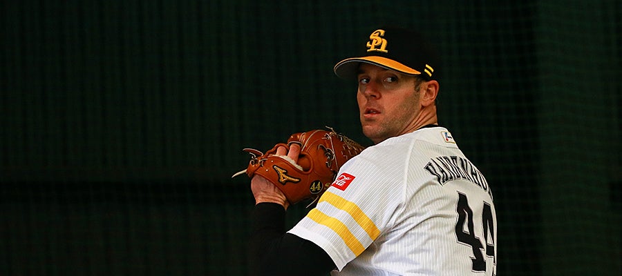 オランダ代表としてWBCに出場するソフトバンクのリック・バンデンハーク投手が宮崎キャンプ最終クール初日の25日、ブルペンで21球の投球練習を行なった。韓国で合宿を張る代表チームに合流するため、27日にキャンプを打ち上げる右腕は軽めの調整を行い「今日はバランスとリズムの確認だね。今のところフィーリングはいい。楽しんでやっているよ」と語った。
