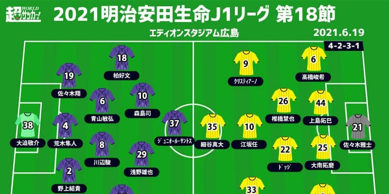 【明治安田生命J1リーグ第18節】 2021年6月19日(土) 19:00キックオフ サンフレッチェ広島(9位/26pt…