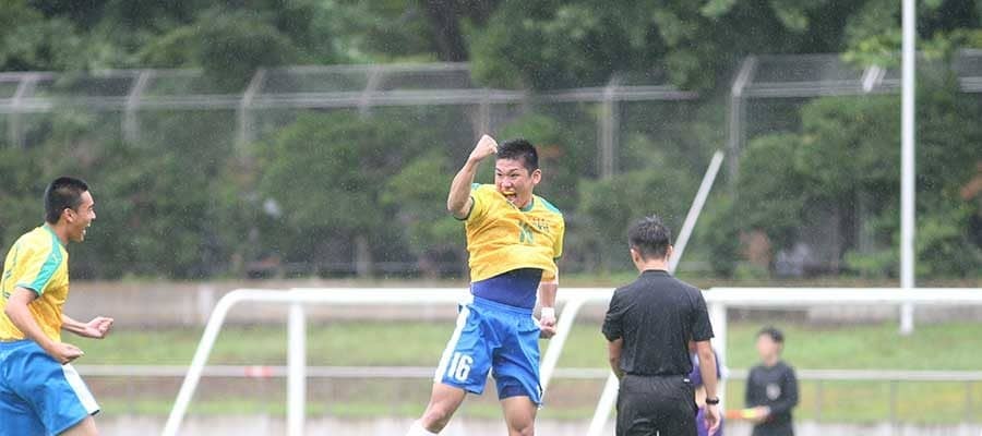 アディショナルタイムに得た右CKで、GK岸本悠将(3年)も前線に上がってパワープレーを仕掛けた。すると、ファーサイドにいたDF荻野海生(3年)が相手の頭の上からヘディングを打ち下ろし、同点に追いついた。荻野は、昨季途中までGKだったが、身体能力の高さを評価されてDFへ転向。大きな1点を生み出した。