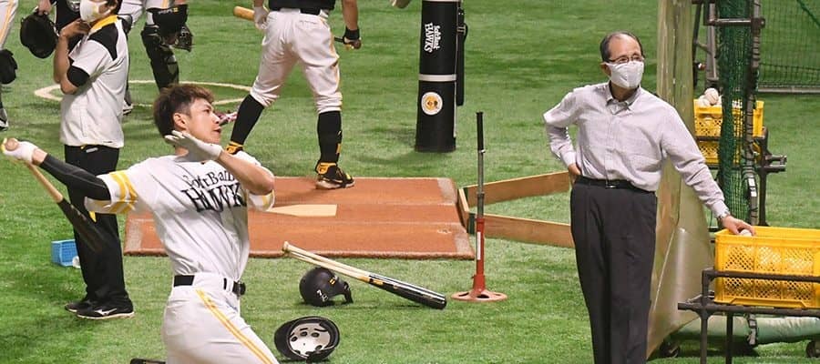 さらに柳田にも少し長めに話をし、その後柳田がトスバッティングを始めると、その場まで足を運んで主砲のスイングを見守った。いつもなら一塁側ベンチの手前で練習を見守り、挨拶する選手やスタッフに気さくに答える程度。それでも、チームが本拠地での白星から遠ざかる中、チームを思う気持ちがそのまま熱い行動に結びついたのだろう。この日の柳田や真砂の打撃に注目したい。(藤浦一都 / Kazuto Fujiura)