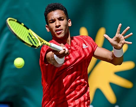 20歳のオジェ アリアシムは今大会のシングルスでも準決勝へ進出。世界ランク31位のU・アンベール(フランス)にフルセットで敗れた。