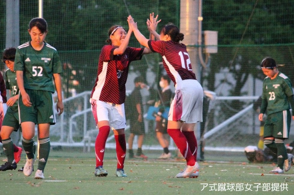 3週間ぶりの関東女子リーグ(関東リーグ)後期第1節、大東文化大と今季3度目の一戦が行われた。関東リーグ首位のア式蹴球部女子(ア女)はこれまで2戦2勝(○3-2、○2-0)を誇り、一方的な試合展開が予想された。前日の試合で2得点のDF木南花菜(スポ1=ちふれASエルフェン埼玉マリ)が前半に先制すると、後半はDF井上萌(スポ3=東京・十文字)の今季初得点を含めて一挙に3点を奪う。そのままピンチらしい場面は訪れず、4-0で完封勝利を手にした。