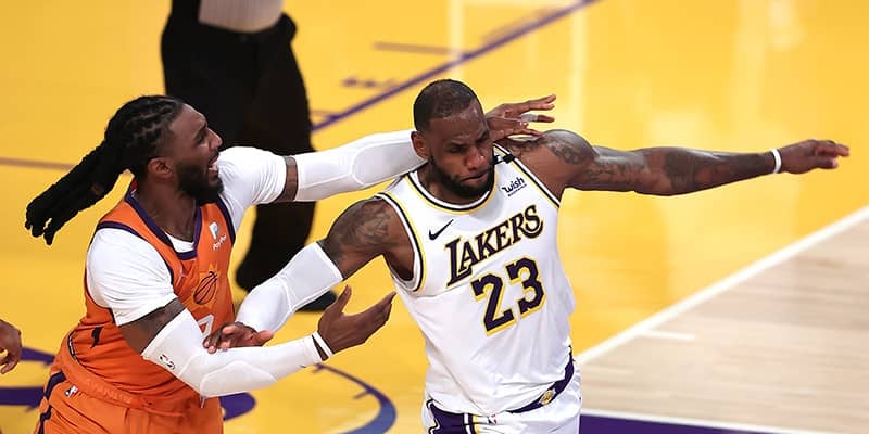 遡ることプレーオフ1回戦、サンズは昨季王者のロサンゼルス・レイカーズと対戦。クラウダーは、相手の不動のエースであるレブロン・ジェームズとのマッチアップを任され、キング相手にタフな仕事を強いることに成功した。