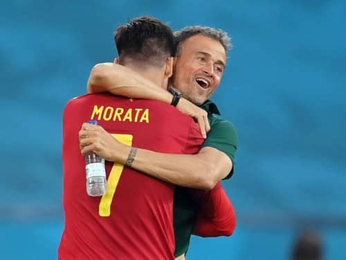 ポーランド戦で先制点を決めたアルバロ・モラタとルイス・エンリケ監督