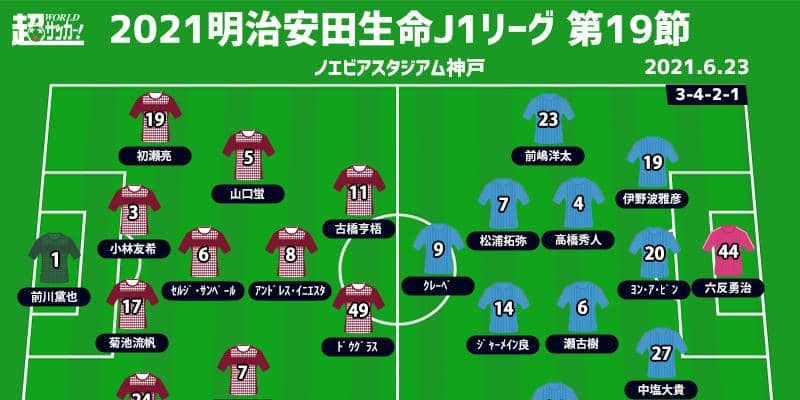 【明治安田生命J1リーグ第19節】 2021年6月23日(水) 18:00キックオフ ヴィッセル神戸(5位/31pt) …