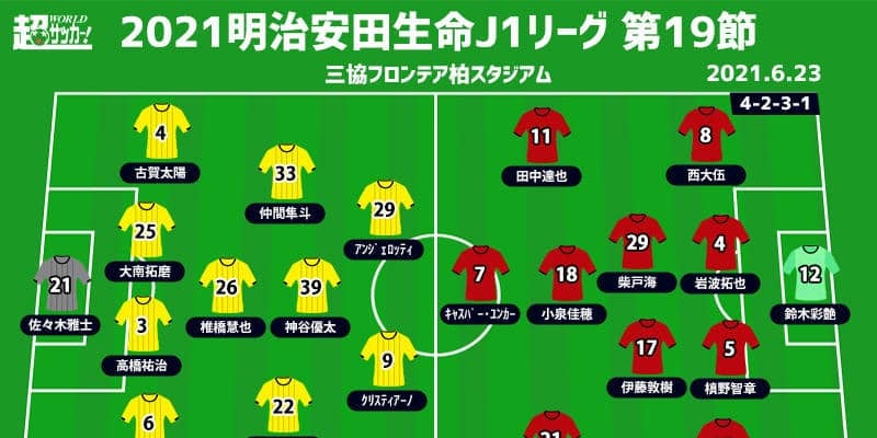 【明治安田生命J1リーグ第19節】 2021年6月23日(水) 19:00キックオフ 柏レイソル(18位/14pt) v…