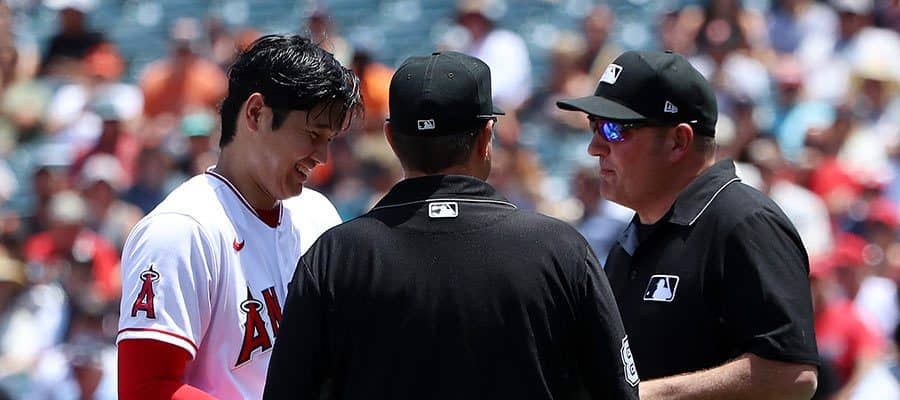 2回の投球後に初の検査、審判団と言葉を交わす場面も■ジャイアンツ 9ー3 エンゼルス(日本時間24日・アナハイム) エン…