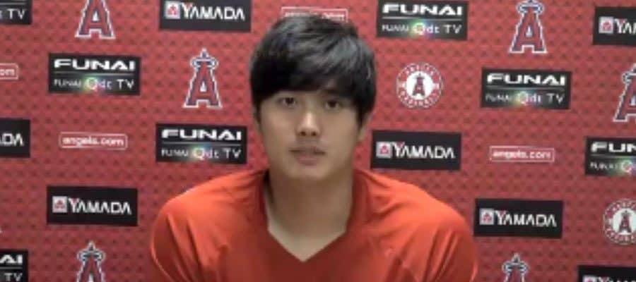 試合後の会見に臨んだエンゼルス・大谷翔平(画像はスクリーンショット)