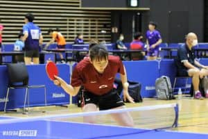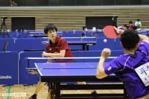 また、今大会ではランク入りを果たせなかったが、シードで出場したルーキーの荒井和也(スポ1=福岡・希望が丘)と福岡乃愛(スポ1=兵庫・三田学園)の存在にも注目だ。荒井は4回戦敗退と振るわなかったが、フォアハンドの強打で積極的に仕掛けた。4回戦で出澤に敗れてべスト32に終わった福岡は、カットマンでは珍しい裏裏ラバーを活かしたバックハンドドライブを得点源に、攻撃でも光るプレーを見せた。