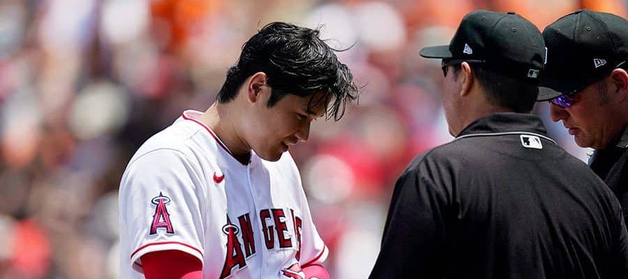 2、4回の投球後に審判団から粘着物質検査を受けた■ジャイアンツ 9ー3 エンゼルス(日本時間24日・アナハイム) エンゼ…