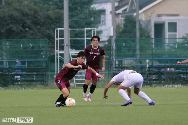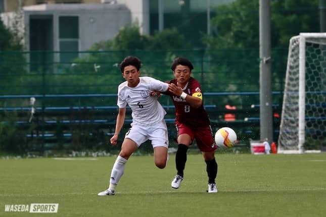 1週間で3試合を戦う超過密日程の2戦目。延期となっていた関東大学リーグ戦(リーグ戦)第8節が行われ、早大は順大と対戦した。前節で首位・法大を破った勢いそのままに得点を挙げたい早大は、前半に決定機を創出するも決めきれず無得点で折り返す。後半は攻め込まれる苦しい時間が続き、終盤にMF倉持快(人4=神奈川・桐光学園)がゴールに迫るがここも得点には至らず。1点が遠かった早大は、悔しい0-0の引き分けに終わった。